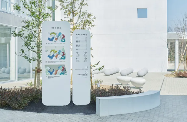 另外就是要搞得比较的清晰,比如这个标识标牌上面会有一些标志,会有一些文字,这些东西都要大家能够清晰的看得到上面用到的颜色,用到的字体,还有用到的结构,这些东西都应该能够清晰可以辨认。另外就是明亮度这些也应该有一定的清晰度和对比度,有的时候为了能够更清晰的去呈现出这个标识标牌,还有可能在标识标牌的背景处或者是在侧面有一些灯光效果,这样哪怕是环境灰暗的时候也能看得清楚仔细。