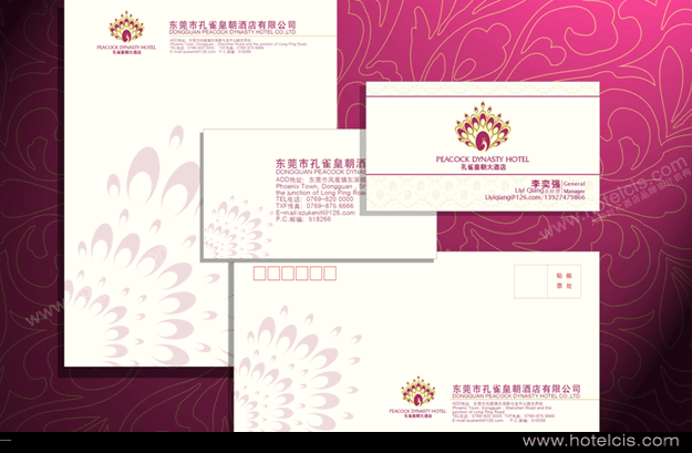 东莞金花子酒店有限公司,原名:金花子酒店,现更名为孔雀皇朝大酒店,重新设计VI系统;