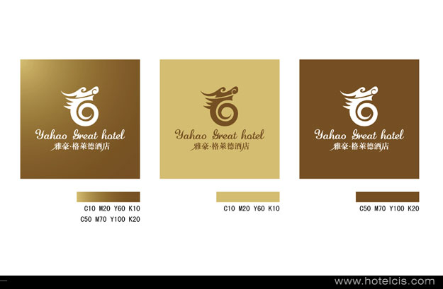 雅豪?格莱德酒店LOGO以中国传统图形“龙”为基本创作元素,同时结合酒店的本身属性,将Great的第一个字母“G”与龙纹相结合,创作出新的视觉图形。